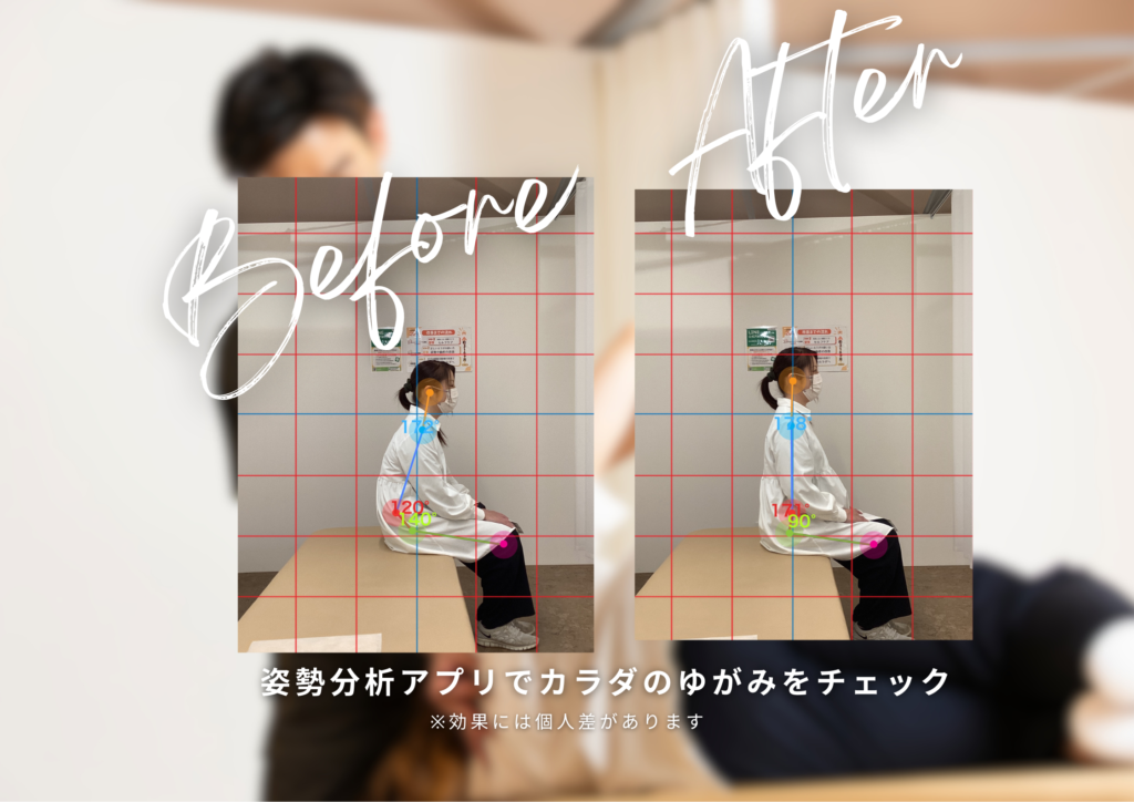 専用アプリで現状の姿勢を細かく見える化することで客観的に状態を把握できます。